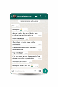 "No geral foi excelente, a revisão do simulado foi sensacional. Ali podemos finalizar com tudo que faltava e reforçamos tudo o que foi visto no curso inteiro. Gostaria de deixar em especial meu elogio a Thais pelo empenho, disponibilidade, carinho e paciência conosco"
